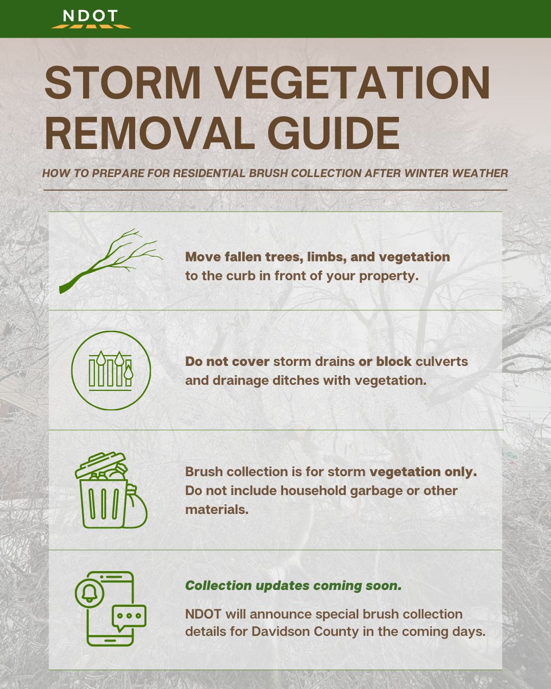 Also, there’s a ton of debris in yards, etc. NDOT will be collecting that brush if it is stacked at the curb (after the roads and safety issues are taken care of) with dates TBD — please see their graphic info below: